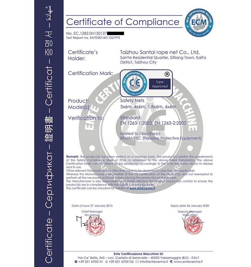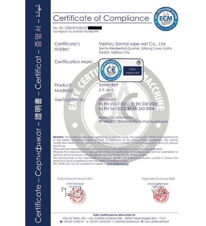 泰州市三泰健康科技有限公司(原 泰州市三泰繩網有限公司),本公司成立于1988年12月22日,至今近30年的生產歷程。多年來的生產經驗,加之我們不斷的創(chuàng)新,已經建設成為集研制、開發(fā)、生產、銷售為一體的龍頭企業(yè)。公司生產線由捻線車間、制繩車間、織網車間、織帶車間、織(絞)繩車間、安全網組裝車間、安全帶組裝車間、檢驗室等組成。企業(yè)現有職工155人,企業(yè)管理人員6名,市場研發(fā)人員8名,專業(yè)質檢人員2名,......